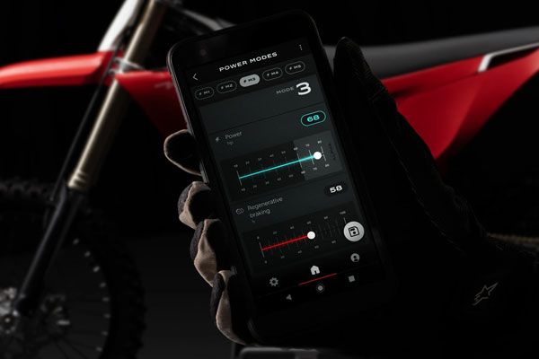 A simple swipe on the phone’s display adjusts the power curve or regenerative braking. Switch between modes with the push of a button—while riding.