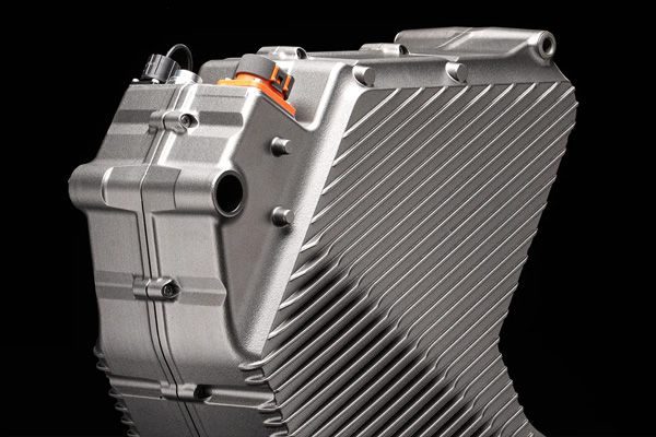 - Water cooled motor case that forms part of the structural chassis to minimize weight and volume.